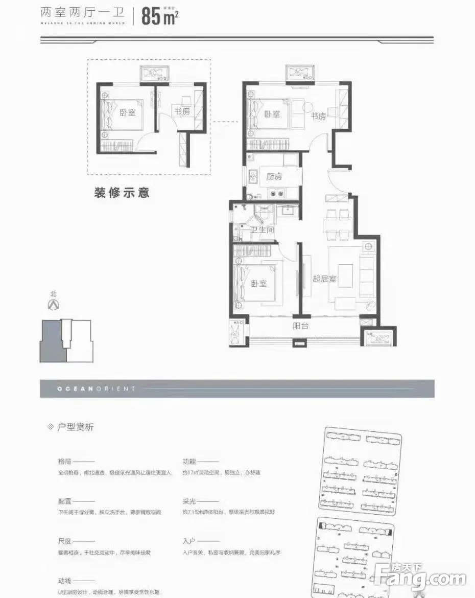 远洋起东方 85平米 经典小三室、130万起