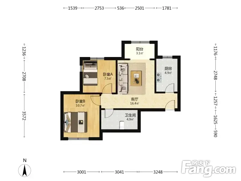 龙峰嘉园 2室1厅 76.41平