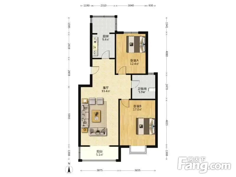 户型齐全,主打户型方正,明卫,双阳台,主卧朝南二居