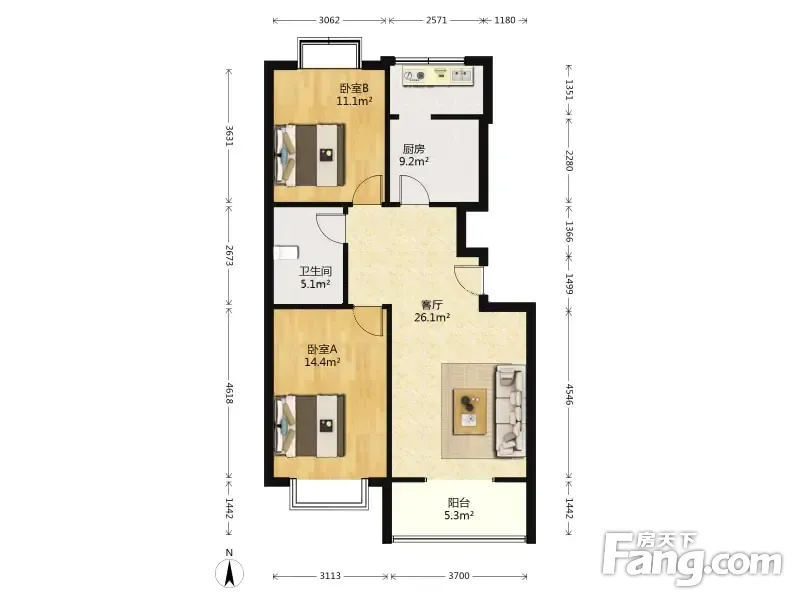雪莲东里 2室1厅 90.29平