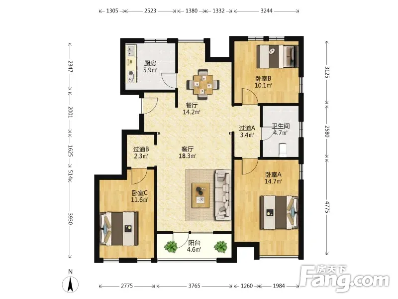 3室2厅1卫