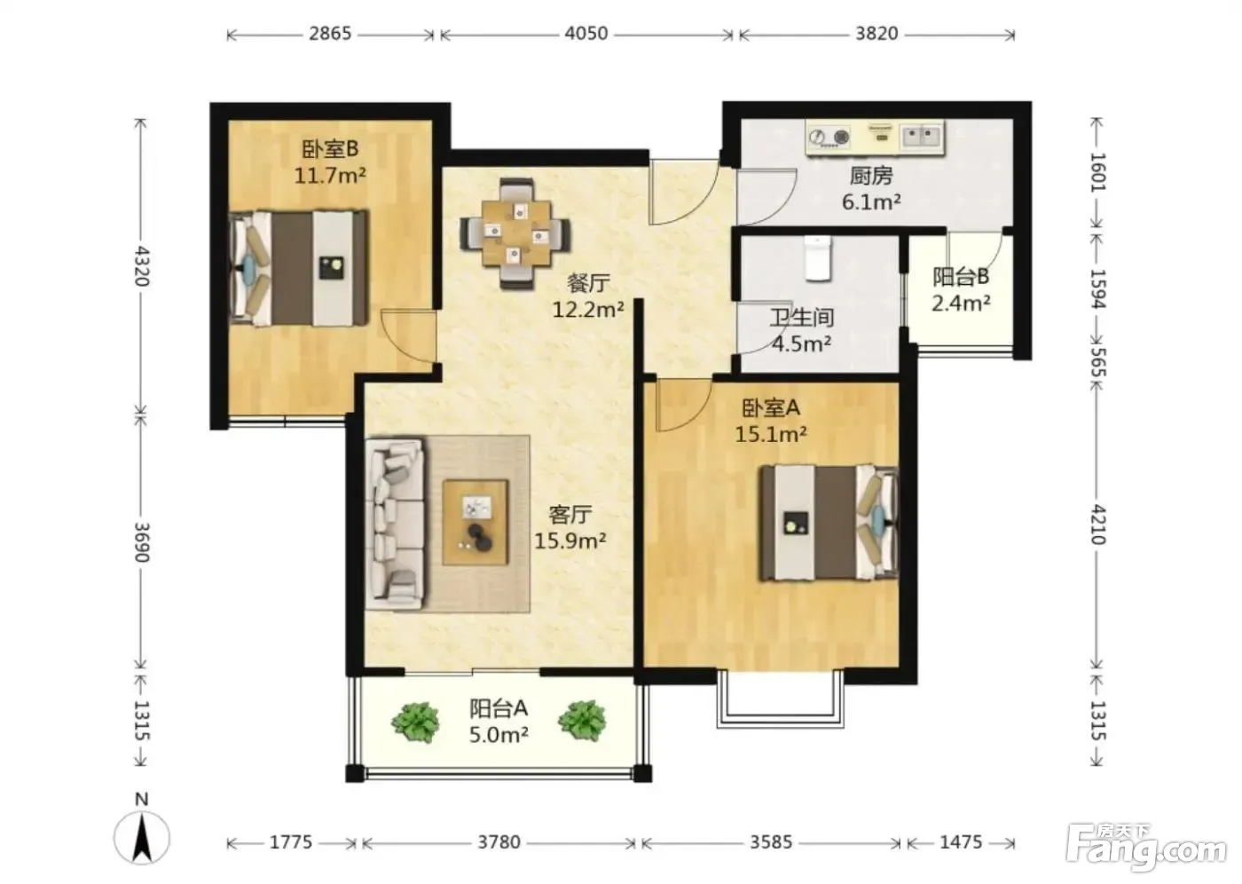 户型齐全,主打双阳台,双卧朝南二居