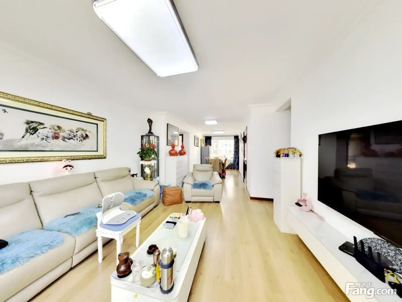 此房正规三室两卫 南北通透 两个阳面卧室都是标准房间 主卧室出台带卫生间 一个阴面卧室很方正,厨房有窗户,客卫很大干湿分离洗衣机洗脸盆互不影响。客厅宽敞明亮大气,整齐布局合理,无浪费面积,适合三代同堂居住,
