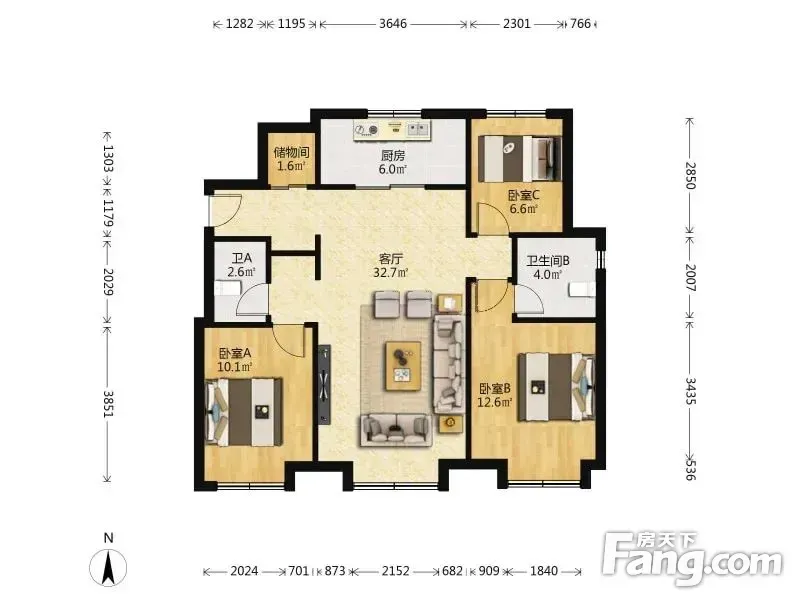 户型齐全,主打南北通透,全明格局三居