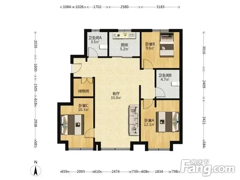3室2厅1卫