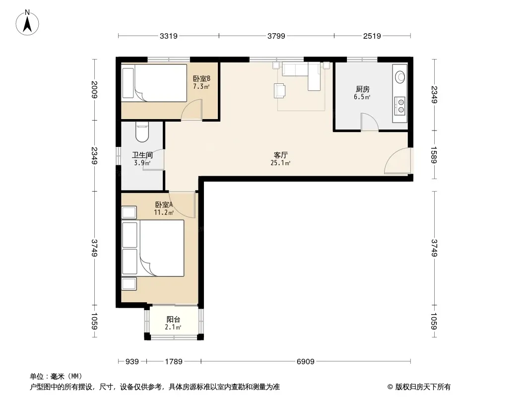 户型齐全,主打户型方正,明厨,主卧朝南一居