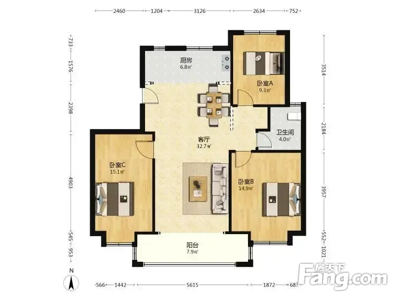 户型齐全,主打南北通透,全明格局,户型方正,客厅朝南三居