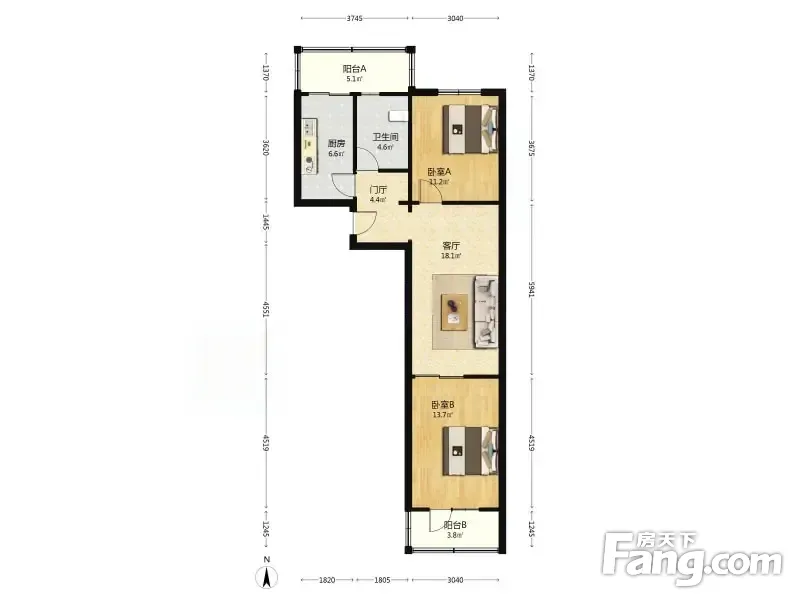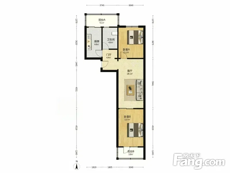 【拥金1】航天北里 2室1厅 84.58平 南北通透 中楼层