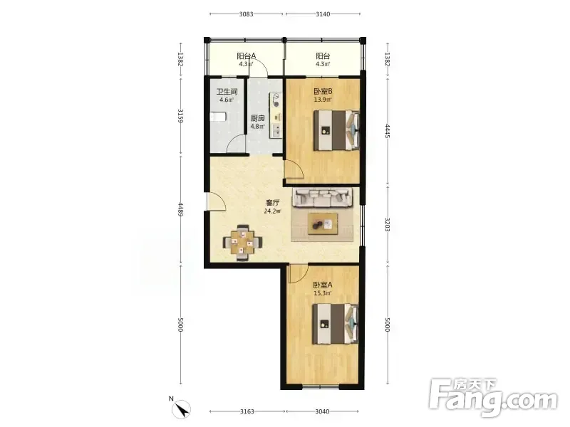 户型齐全,主打户型方正,明厨,客厅朝南二居