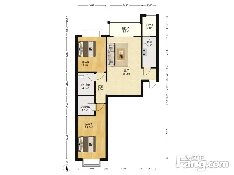户型齐全,主打户型方正,明厨,客厅朝南,双阳台二居
