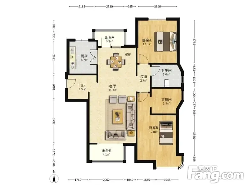 户型齐全,主打户型方正,明厨,明卫,双卧朝南,主卧朝南三居
