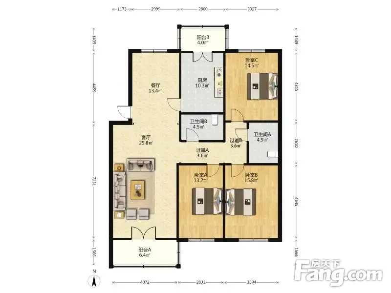【拥金1】广泰园 3室2厅 149.46平 南北通透户型方正