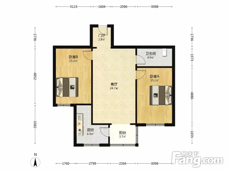 户型齐全,主打户型方正,明厨,主卧朝南二居