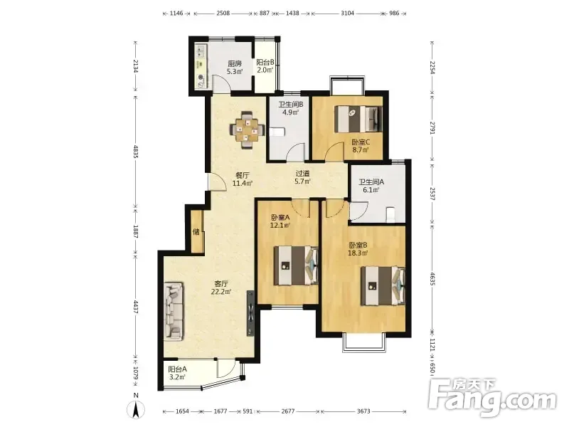 【拥金1】城南家园 3室1厅 140.92平 南北通透