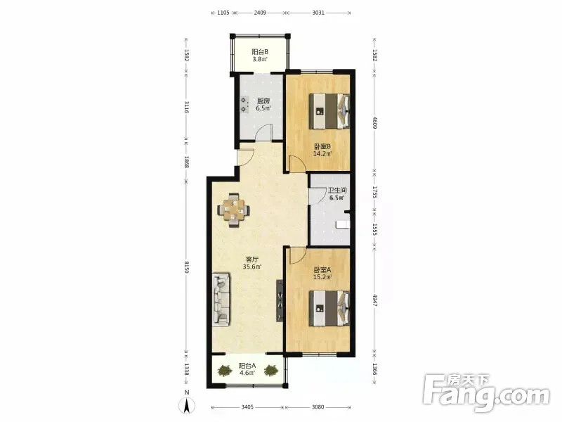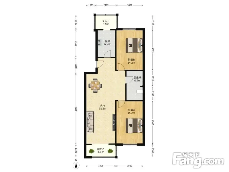 【拥金1】邮电公寓 2室1厅 107.2平 南北通透H户型