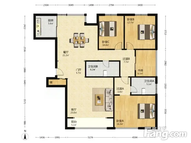 房屋拥有相对宽松的尺寸,布局通透,动静分离,设计豪华