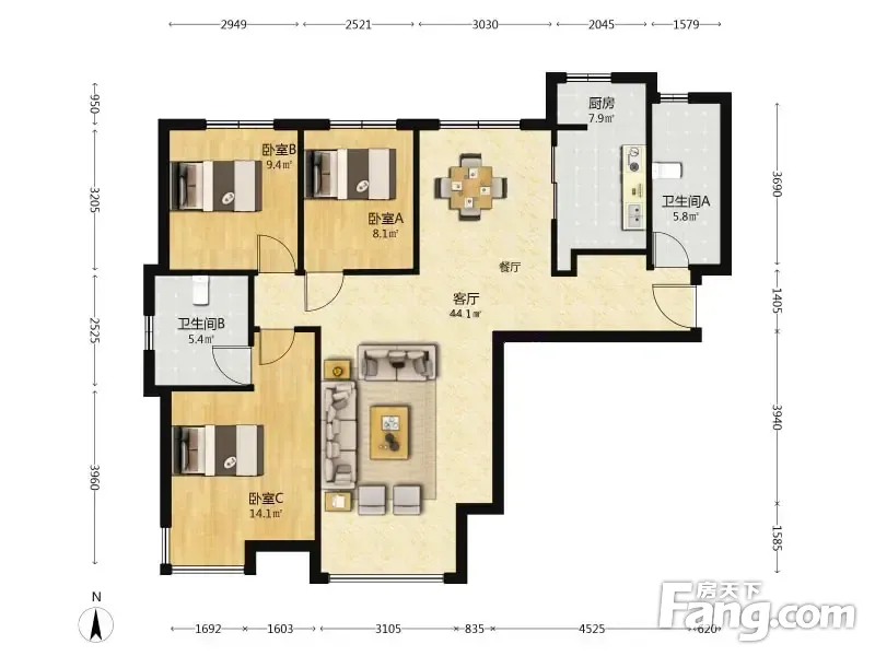 3室2厅1卫