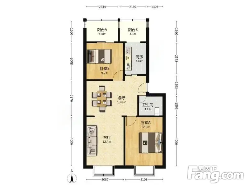 户型齐全,主打户型方正,明厨,明卫,主卧朝南二居