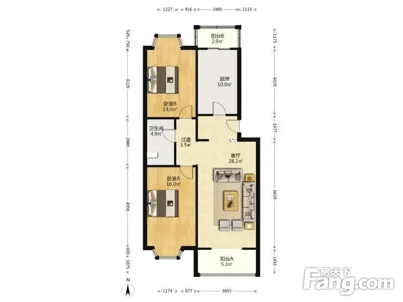 户型齐全,主打户型方正,客厅朝南,双阳台二居