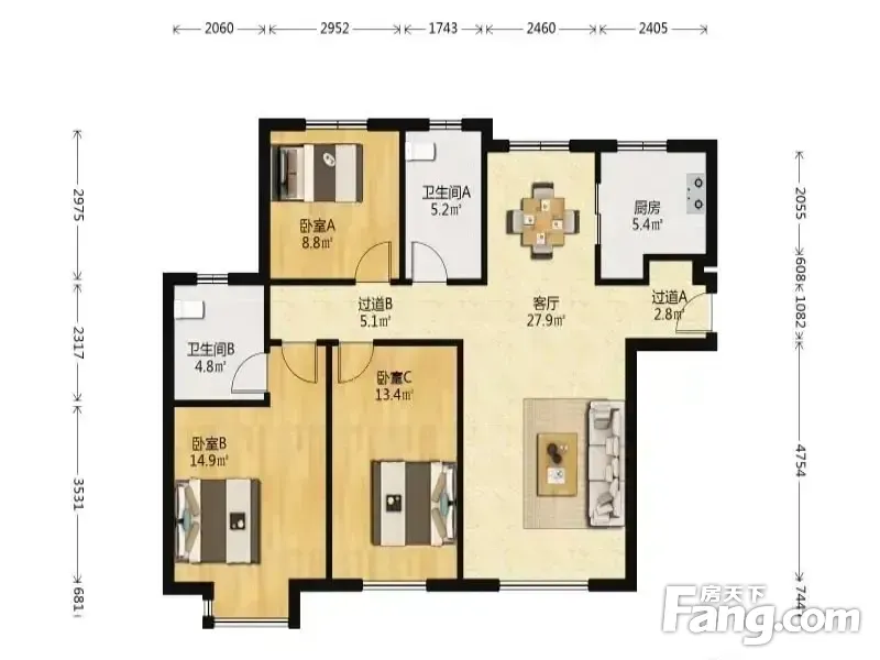 3室2厅1卫