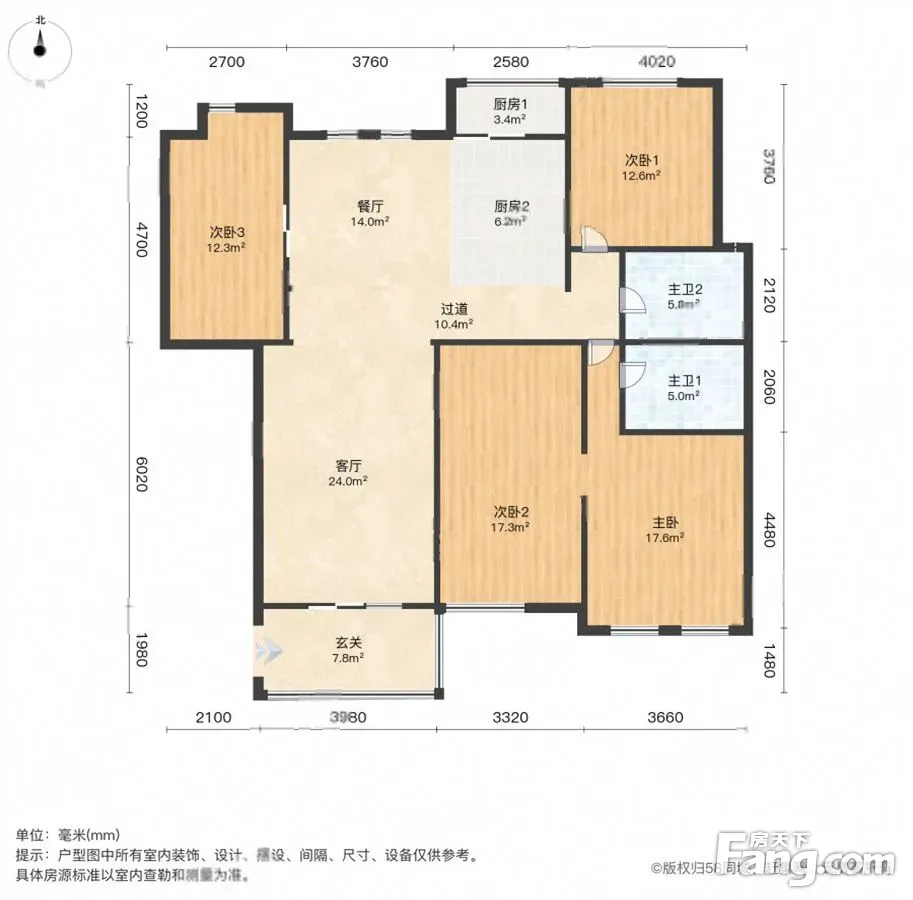 户型齐全,主打独立衣帽间,明卫,客厅朝南,主卧朝南三居