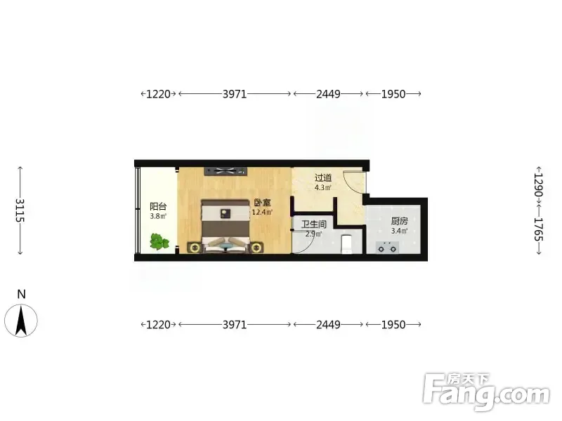 此房正规一室一厅一卫 卧室是标准房间带阳台 ,厨房卫生间都很方正,整齐布局合理,无浪费面积,住着舒服。产权清晰
