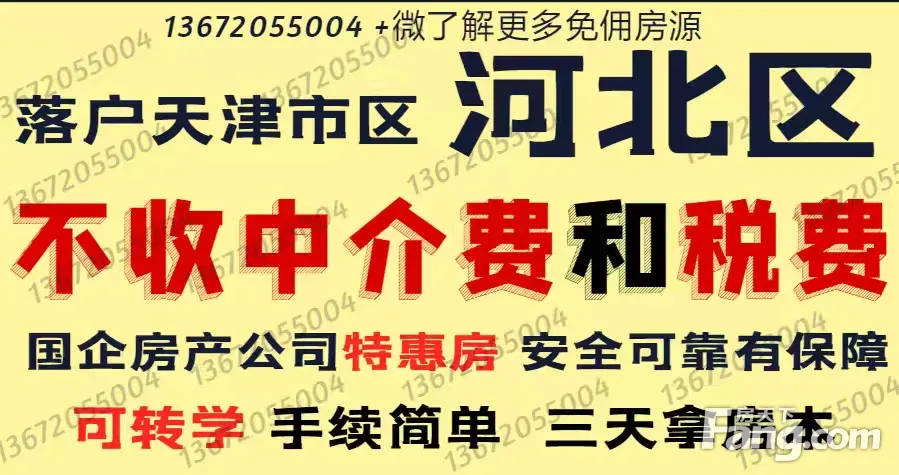 此房属于我司置换特惠房,周转过渡工具房,无后期費用 1、天津市国营房产公司保驾护航,手续简单,即刻落戸。 2、户型方正,设计合理,没有任何浪费面积。 3 适合落戸,户型格局好用 4、戸口属于河北区,天津市区戸口, 初/中可摇号 河北片 (河北区初/中转/学无影响) 5、我司属于国营房产公司,另有特惠房(无中阶費和过户税費)如需了解详情,请与我联系。 可+微13672O55OO4 了解更多房源信息。