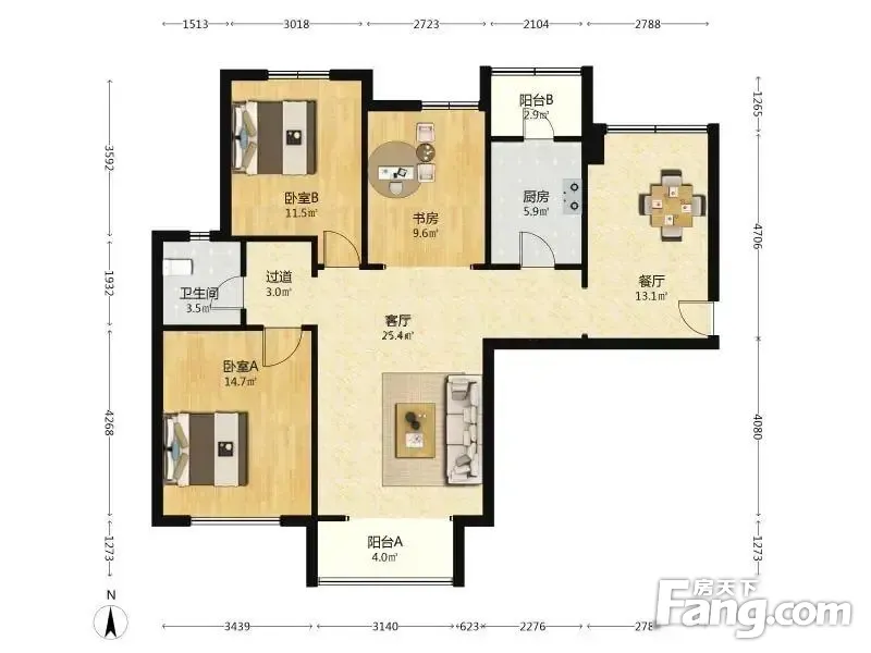 万科金域蓝湾 3室2厅 118.62平
