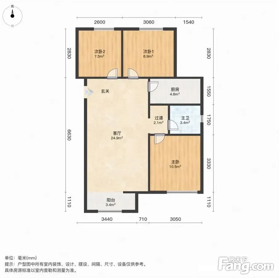 户型齐全,主打卧室朝南,主卧带卫,观景飘窗,带衣帽间三居