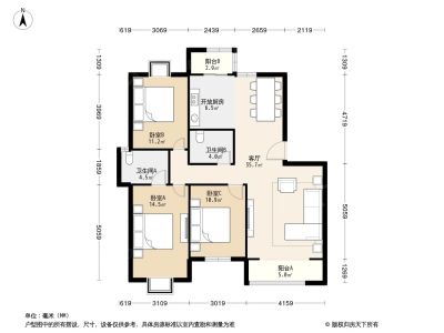 户型齐全,主打户型方正,明卫,明厨,客厅朝南,主卧朝南三居