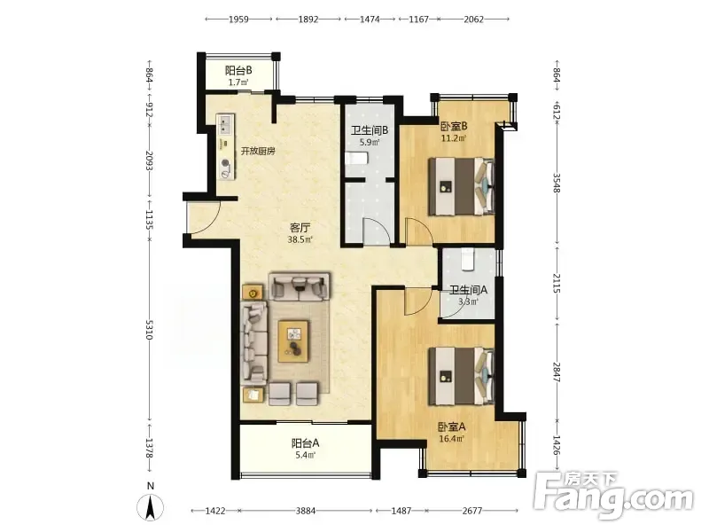 户型齐全,主打户型方正,明卫,独立衣帽间,客厅朝南二居