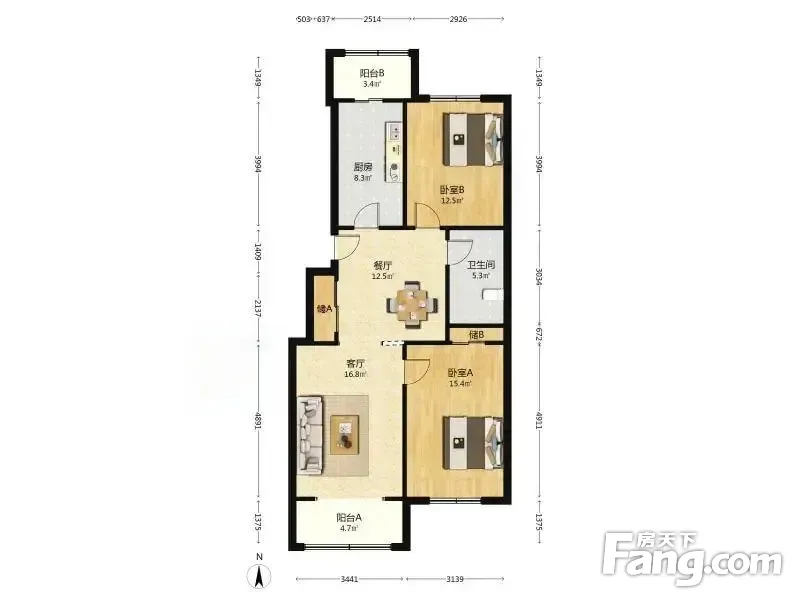 【拥金1】新都花园 2室2厅 104.19平 南北通透H户型