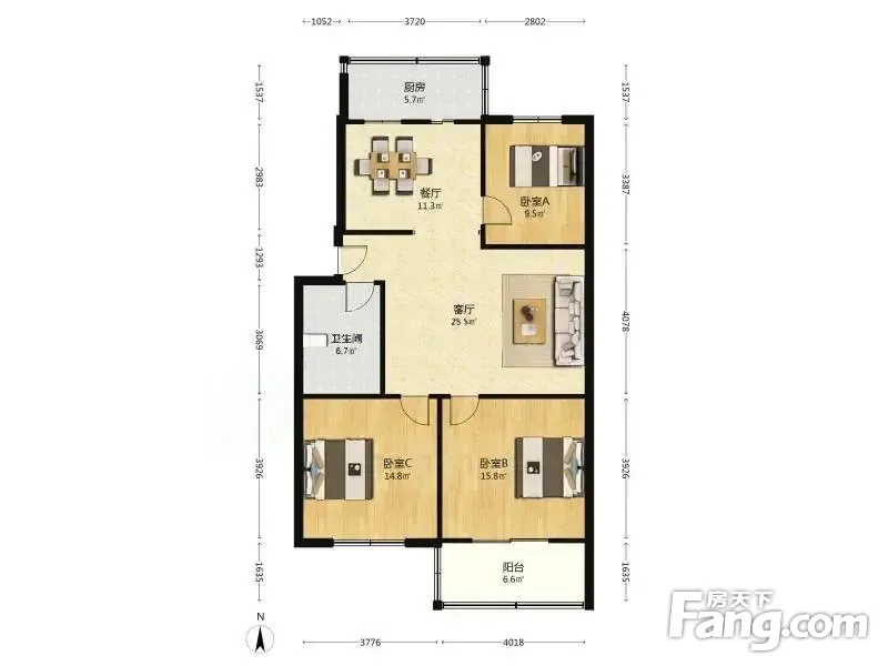 【拥金1】博cai公寓 3室2厅 114.34平 南北 3楼