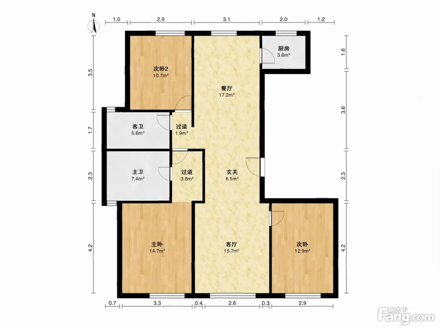 户型齐全,主打采光充足,厨卫不对门三居