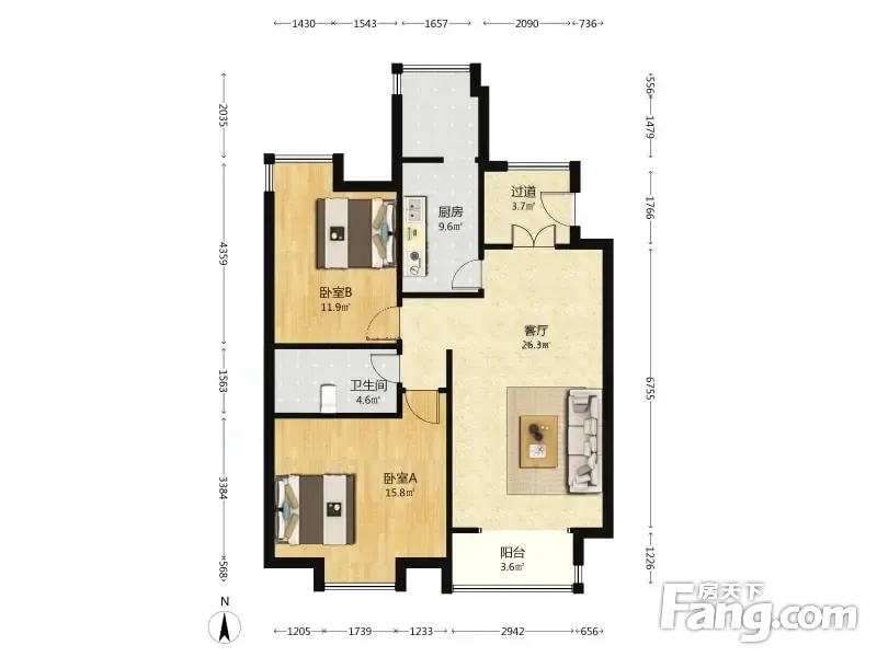 香邑国际 2室1厅 101.11平