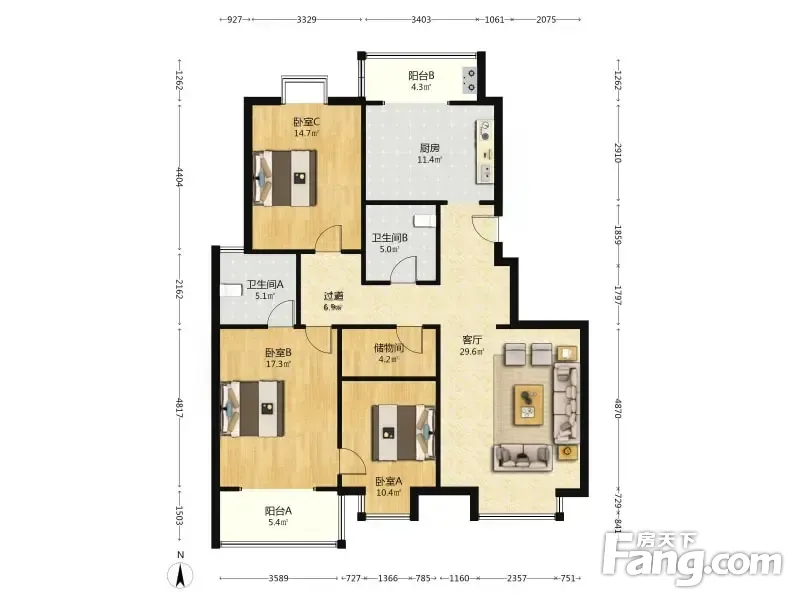 3室2厅1卫