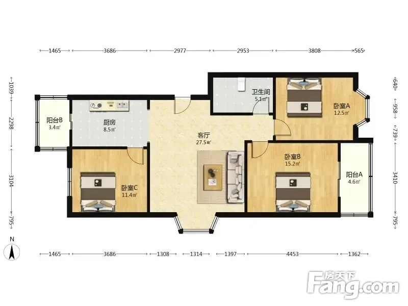 凯兴天宝公寓 3室1厅 107.79平