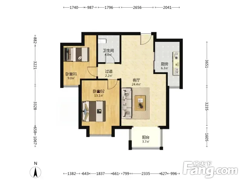 北开花园 2室2厅 87.14平