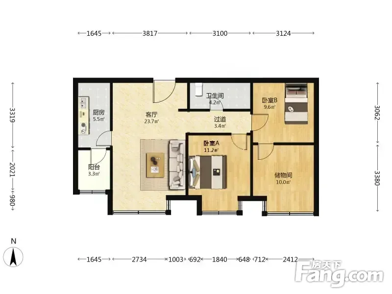 户型齐全,主打户型方正,明卫,客厅朝南,双卧朝南二居