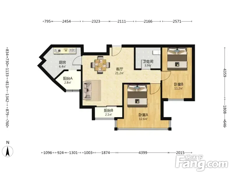 大园新居 2室1厅 85.61平