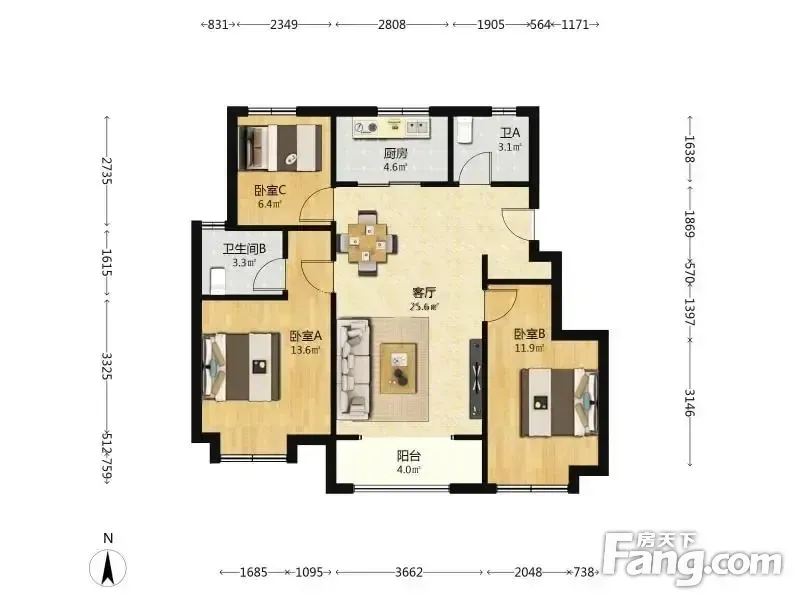 3室2厅1卫