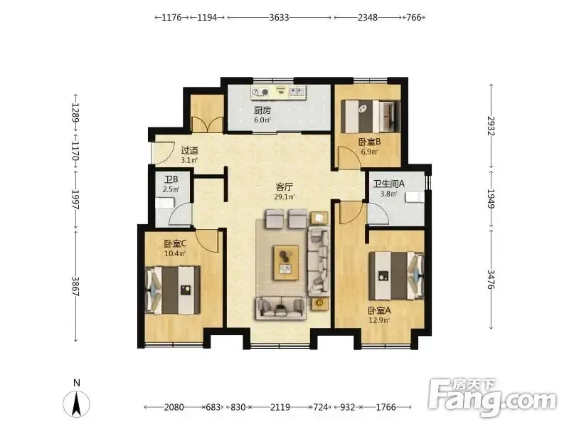 户型齐全,主打南北通透,全明格局三居
