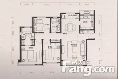 北岸中心 3室2厅 131.44平 大三室 精装修