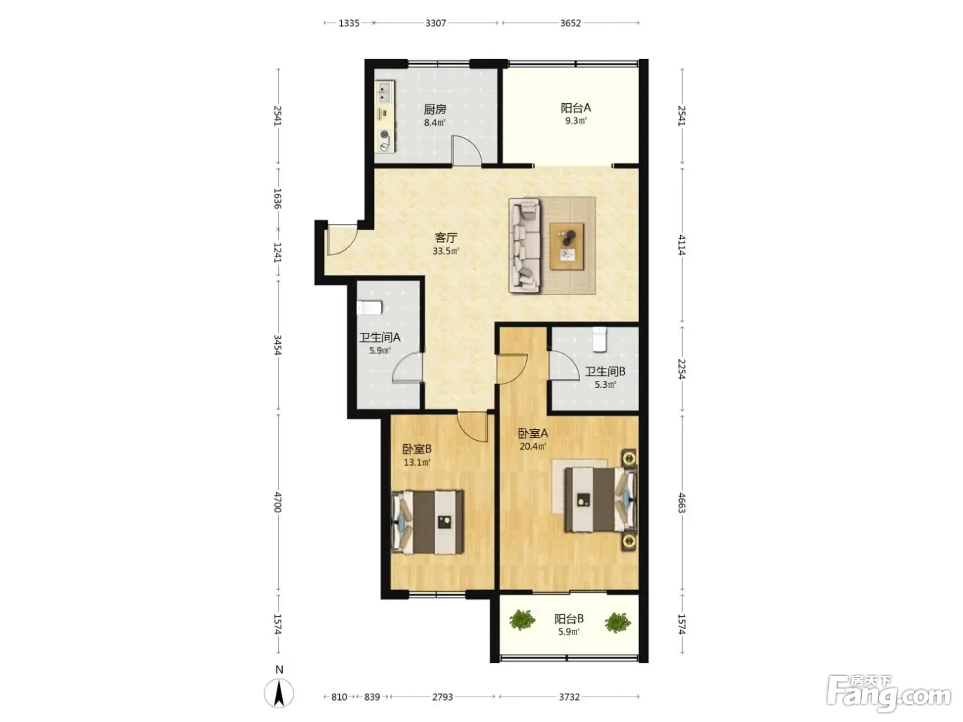 户型齐全,主打户型方正,客厅朝南,主卧朝南二居