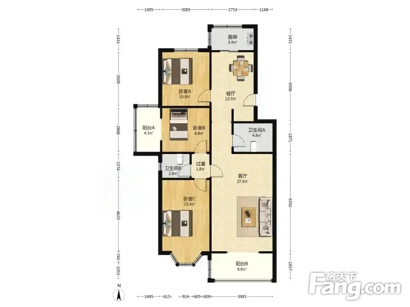 3室2厅1卫