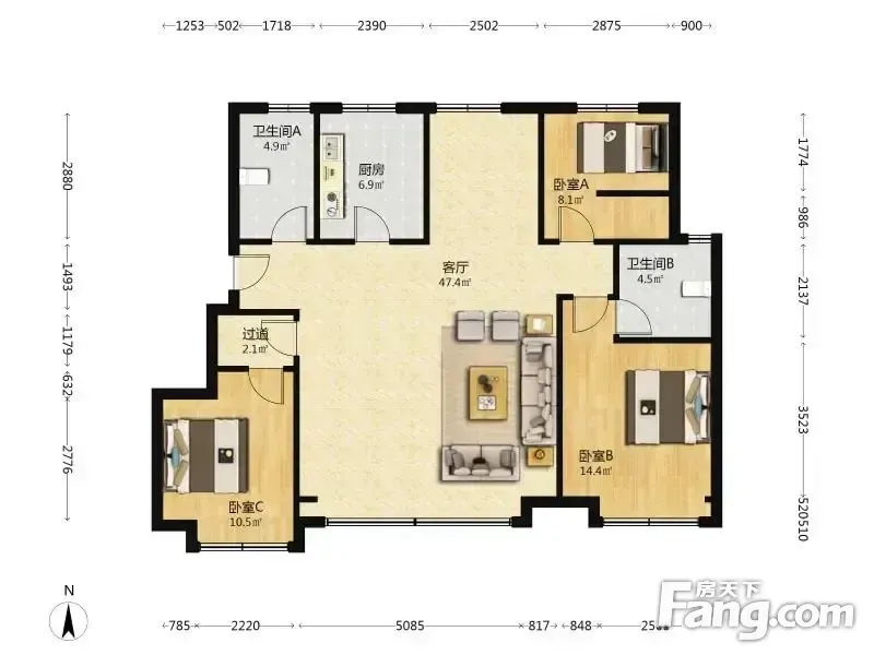 户型齐全,主打南北通透,客厅朝南三居