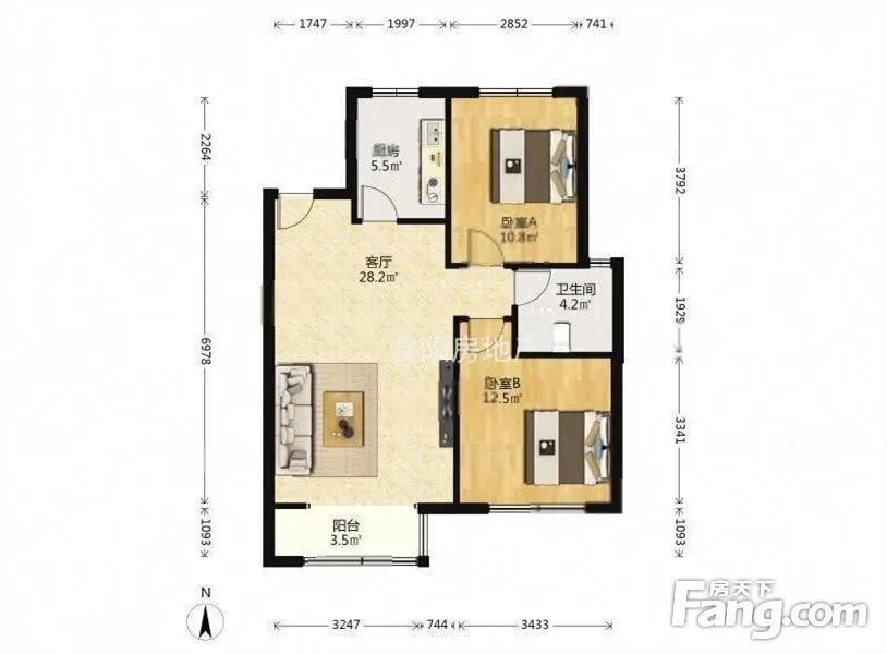户型齐全,主打明卫,客厅朝南,双卧朝南,主卧朝南二居