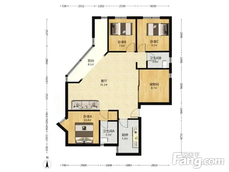 此房正规三室两卫 布局合理 房型方正 住着舒服 无浪费面积 产权清晰 ,无抵押 无尾款过5年 可放心购买 、整齐布局合理,无浪费面积,住着舒服。