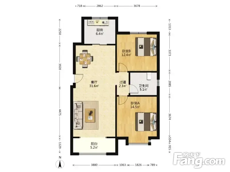 户型齐全,主打户型方正,明卫,明厨,双卧朝南,主卧朝南三居