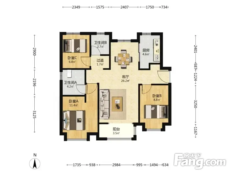 户型齐全,主打南北通透,全明格局三居